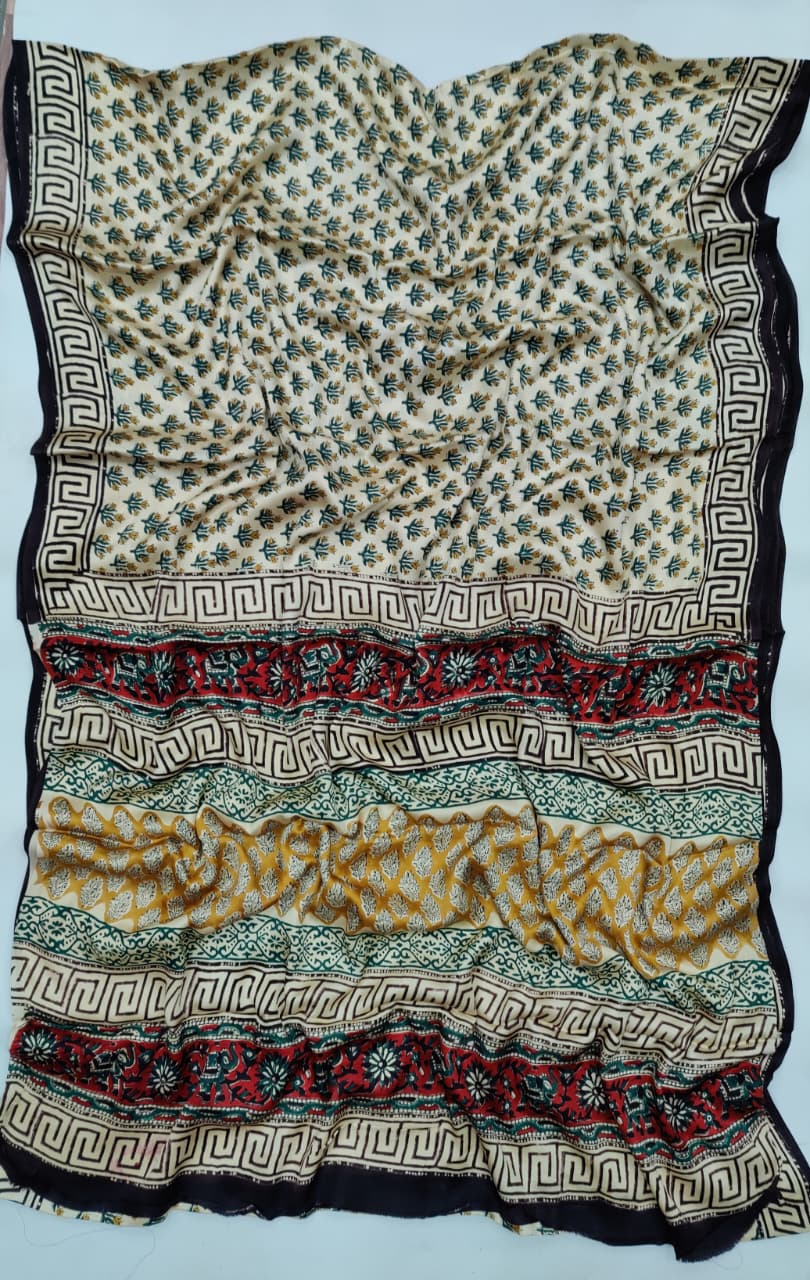 Premium Natural Ajrakh Hand Block Printed Modal Silk Saree